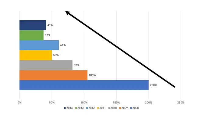 从初创期完全依赖OEM业务,到早期OEM和自有品牌共同发展,再到最近几年更多的增长来自自有品牌业务,鼎阳这10年来一直是全球增长率最高的数字示波器制造商,我们在这个行业创造了一个发展奇迹!2007年,鼎阳同全球高端示波器的领导者美国力科公司结为战略合作伙伴关系,鼎阳的研发能力、生产工艺、产品质量等都上到一个新的台阶。到2011年底,鼎阳已经成长为中国销量领先的数字示波器制造商。2012年全年,鼎阳的数字示波器整体出货量达到中国第一、全球第二的位置。下面图表是我们可以骄傲地对外公布的年增长率数据。