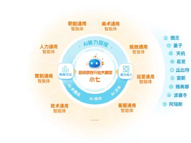 此外,三七互娱自主研发的行业大模型 “小七”,实现了代码生成、素材创作等复杂办公辅助,客服与翻译场景覆盖率达 90%。“小七”通过与华为的数据中心、云平台深度协同,加速了模型的训练与优化,推动文娱产业向 “数据驱动 - 模型决策 - 实时优化” 的智能化研运体系跃升。