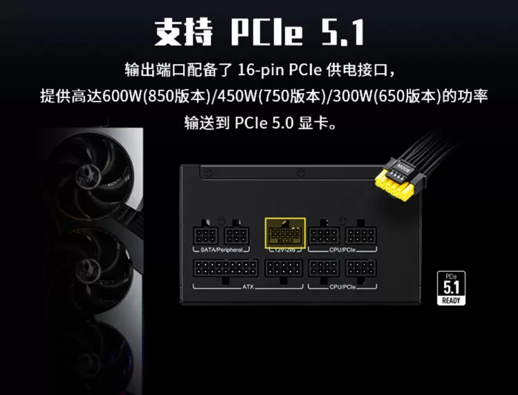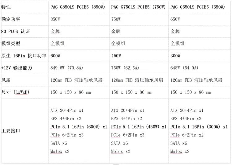 PAG G850LS PCIE5:最高输出 600W (单接口)