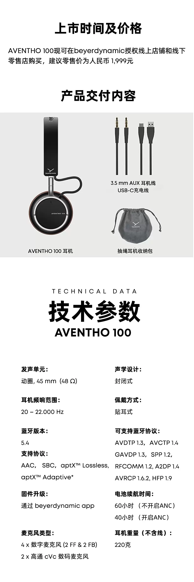 “AVENTHO 100耳机以其经典的音质以及出色的美学和材料质量向该品牌的传统致敬。”
