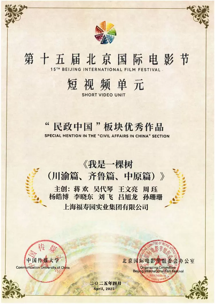 福寿园原创系列短视频获北京国际电影节优秀作品奖