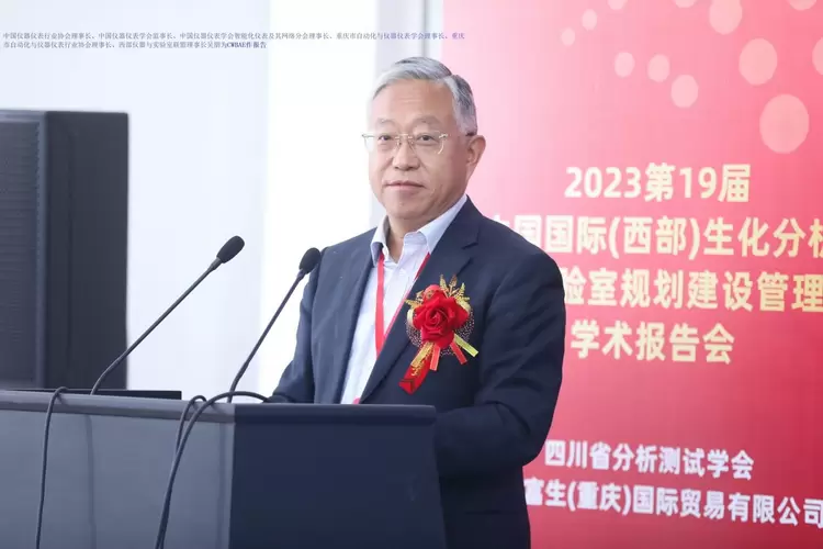 上图为中国仪器仪表行业协会理事长、中国仪器仪表学会监事长、中国仪器仪表学会智能化仪表及其控制网络分会理事长、西部仪器与实验室联盟理事长、重庆市自动化与仪器仪表学会理事长、重庆市自动化与仪器仪表行业协会理事长-吴朋为大会致词