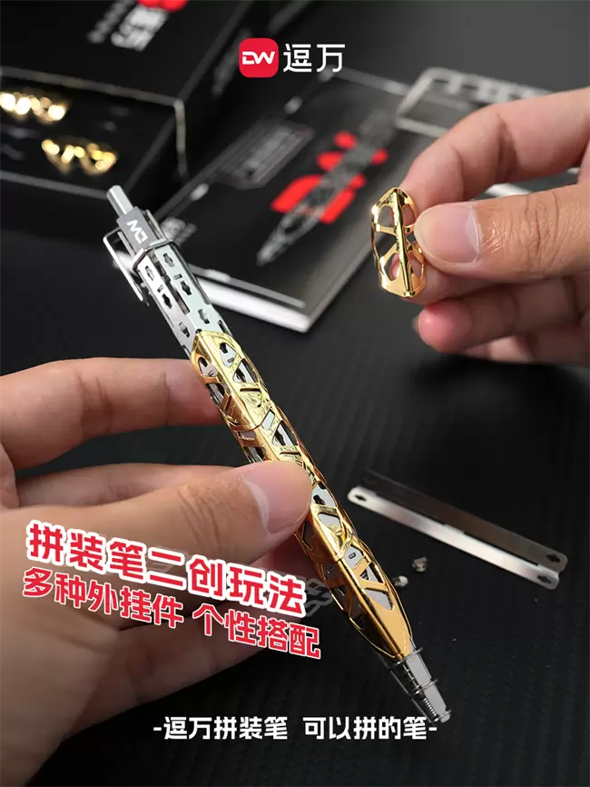 除了基础的拼装玩法,逗万拼装笔还有多样的二创玩法。铠甲系列、建筑系列、星舰系列等多种二创系列,从不同的造型灵感出发展现出独特的美学魅力,使这些拼装笔不仅是书写工具,更像是一件件精美的艺术品。