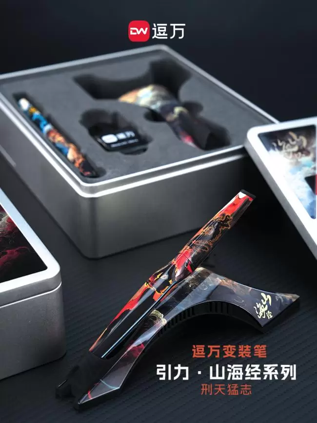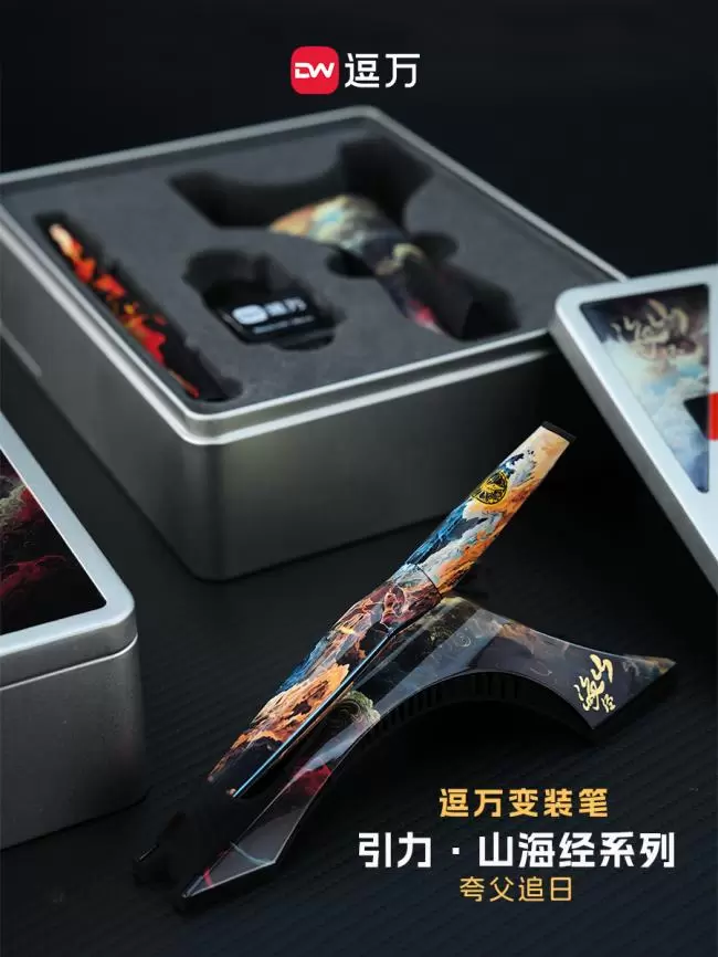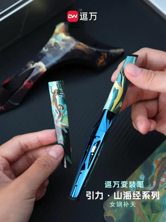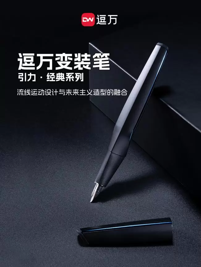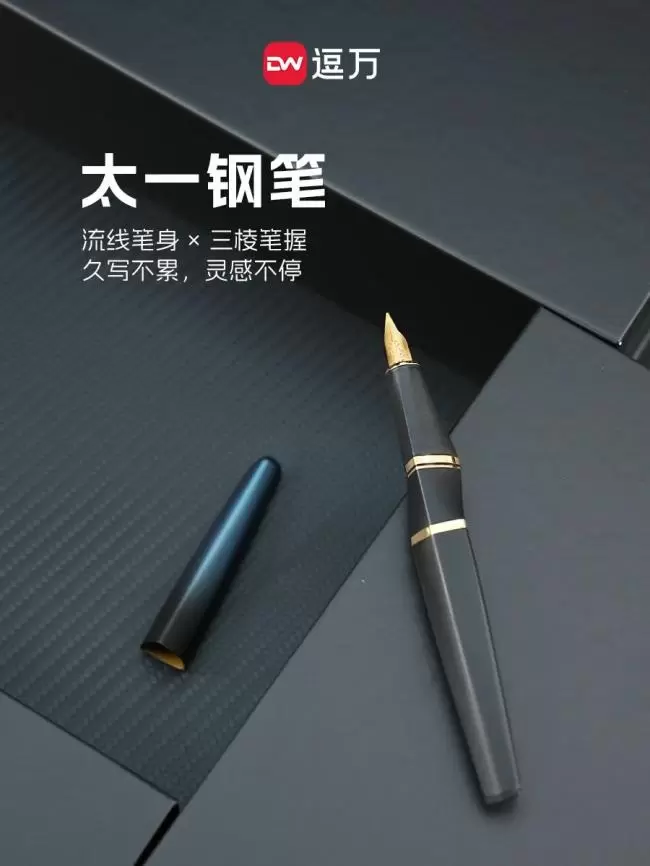 其中逗万太一钢笔作为技术集大成者,不仅用拓扑数学理念打破传统笔身设计,重构书写美学。还以磁吸模块融合钢笔/签字笔双笔头切换设计,将机械美学与文化仪式感完美融合,颠覆了对传统金属笔的形象认知,成为品牌标杆
