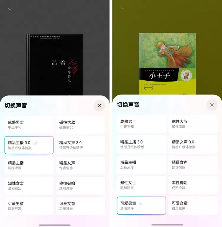 在听书方面,华为阅读联合中国传媒大学推出的精品音色 3.0,为用户带来了沉浸式的听书体验。精品音色 3.0声音中加入自然呼吸、停顿,能够识别和展现多种情绪,韵律丰富、重点突出。在听《活着》这类情感深沉的书籍时,精品音色 3.0 能将书中的悲怆情感通过声音细腻地传递出来;而在听《小王子》时,又能展现出纯真的氛围。用户可以闭上眼睛,随时随地享受高品质有声内容,无论是在高铁上、飞机上,还是在家中,都能让耳朵享受一场文学盛宴。