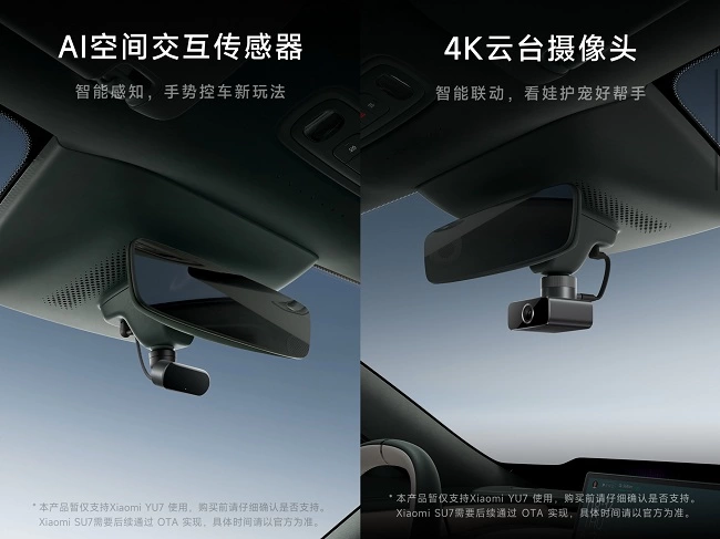 6月26日,小米首款豪华高性能SUV —— 小米YU7发布,其中车内后视镜配备的「4K云台摄像头」和「AI空间交互传感器」,将高清视觉、语音控制、手势控制全面升级并深度融入车内场景,为驾驶者带来了更为便捷智能的交互体验。