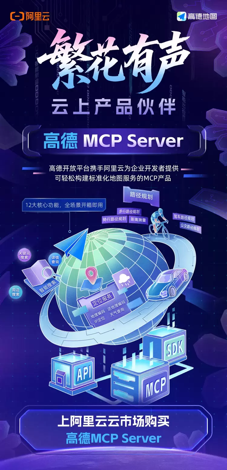 作为阿里云AI生态伙伴计划-"繁花计划"首批标杆伙伴,高德开放平台携手阿里云,面向企业开发者推出地图服务产品MCP Server,通过技术能力与生态资源的深度协同,助力开发者高效构建标准化地图服务,加速智能化场景落地。