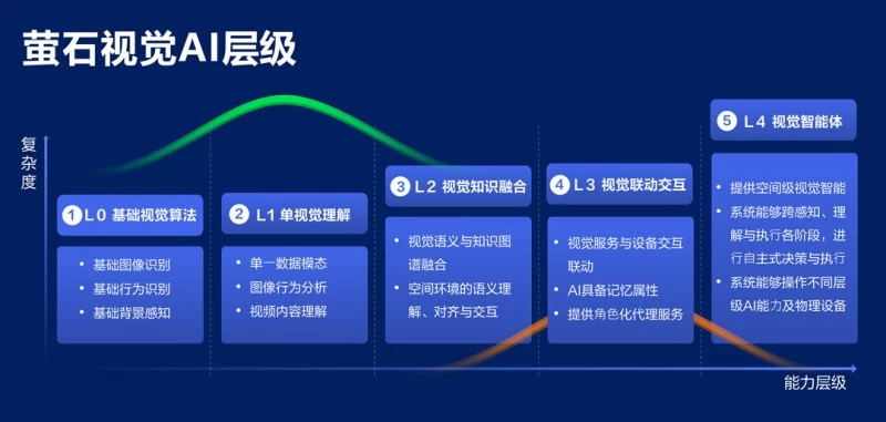 萤石还积极探索新技术应用,将 AI 与萤石云双驱动技术核心融入产品生态体系。2024年,萤石发布了自主研发的家居行业首个具身智能大模型——萤石蓝海大模型,构建“感知-思考-执行”三层技术架构,涵盖从基础算法到空间级具身智能的五级AI技术体系。在萤石蓝海大模型的支持下,算法商店的检测准确率大幅提升。2025年,萤石蓝海大模型2.0版本已具备更强的感知、理解与记忆能力,新增的垂直场景大模型正在深度赋能入户领域,搭载入户安全混合大模型的萤石智能锁,能准确理解入户的各种事件情况,如门口存在可疑人员出没,包裹存在丢失,门口安全指数低等智能化服务。