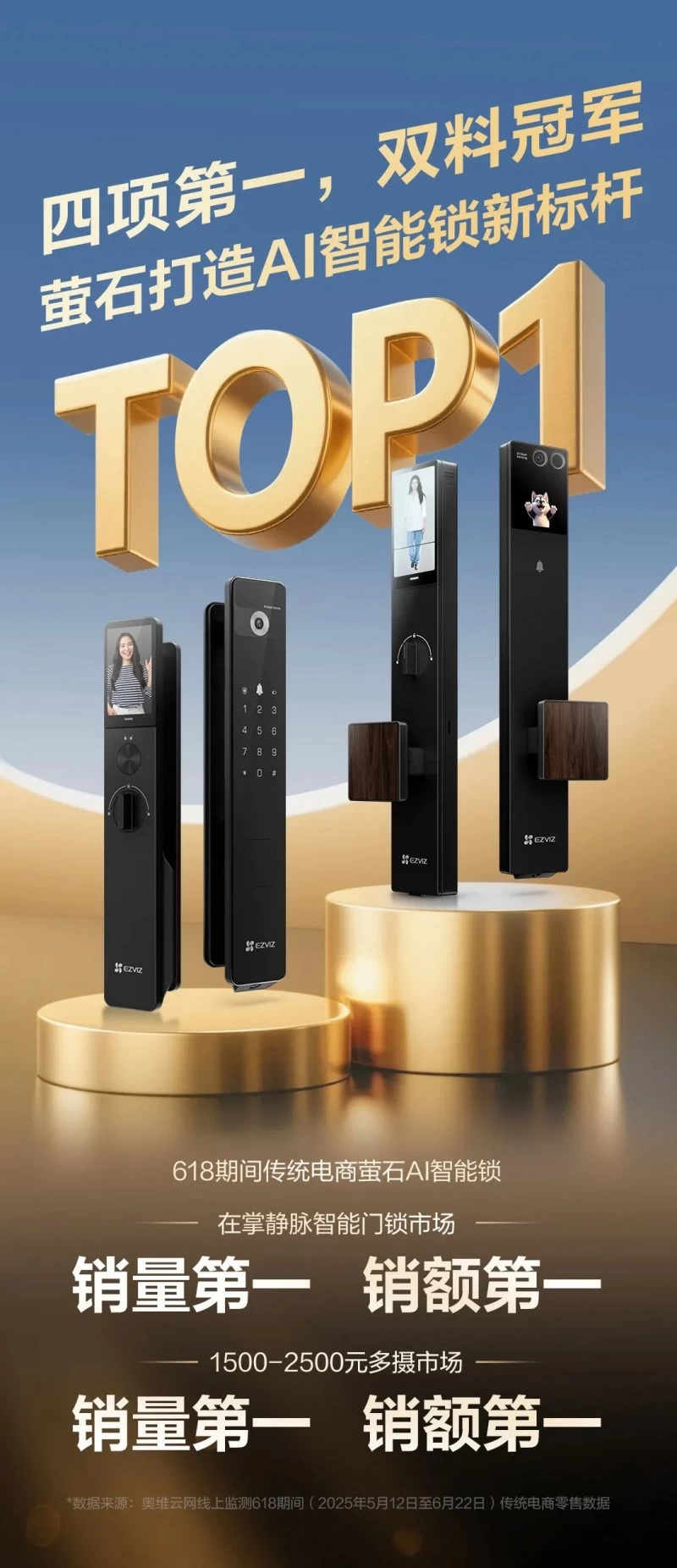 - 萤石网络获市场地位权威认证:AI智能锁引领者