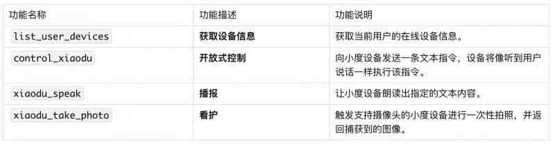 小度音箱 MCP Server:支持开发者通过文本指令实现设备控制、语音播报及远程看护;