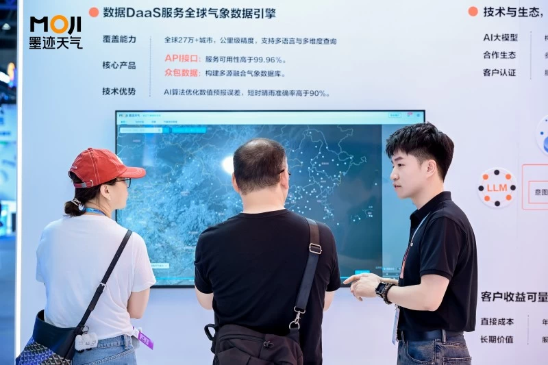 在 7 月 18 日开启的首届气象经济博览会上,完成品牌焕新的墨迹天气首次公开亮相。此次以“气象融入新经济,携手共创好未来”为主题的行业盛会,旨在推动气象与各行各业的融合,让气象为全社会提供高质量服务。作为国内领先的气象服务企业墨迹天气创新性提出“预见型气象服务”理念,推动行业持续深化“AI+气象”的探索及行业应用,助力气象经济高质量发展。