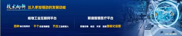 突破运营技术,在工业领域,升级格物工业互联网平台,打造工业协议软网关、工业设备物模型和工业现场机器人;在医疗领域,构建联通智慧医疗平台,实现数据采集、标注、开发、流通的智能化运营。