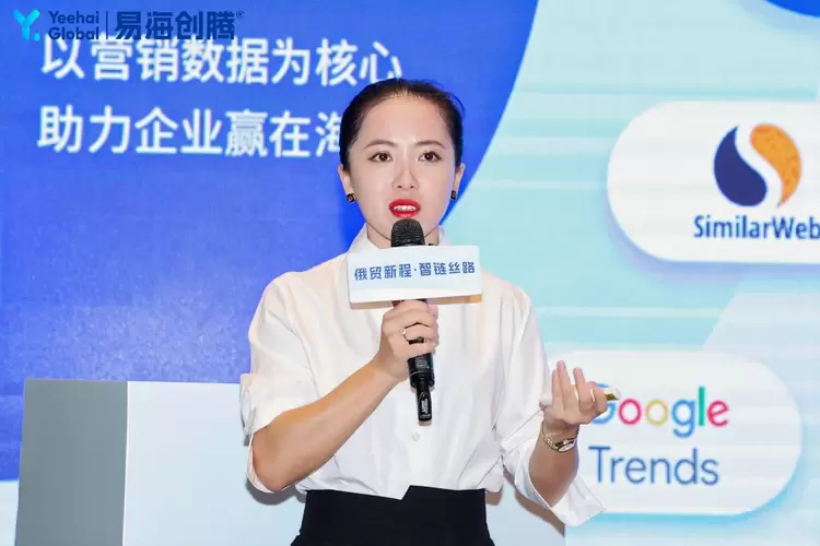 Yandex大中华区渠道负责人袁亚平带来题为《用数据破译俄罗斯流量密码》的主题演讲。袁亚平从数据维度系统分析了俄罗斯及独联体国家用户对中国商品的兴趣趋势、搜索行为与选购偏好,展现了Yandex作为“全链生态型平台”在流量、洞察与转化环节中的核心价值。她在分享中提到,2024年中国对俄出口额已达1155亿美元,俄语市场对服装、家电、家居用品等类目的线上搜索热度持续攀升。以“批发贸易”为关键词的搜索量在2024年下半年占据俄语区总量的46%,尤其在11月达到全年峰值。