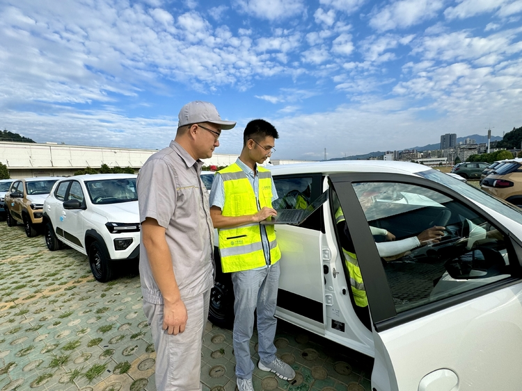 移动网络技术人员在车企进行5G专网测试
