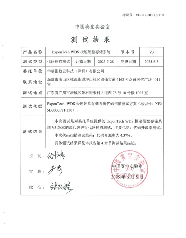自信创产业迈入规模化推广阶段以来,国家政策持续加码,为信创产业发展注入了强劲动能。79号文中明确提出2027年实现央企国企100%信创替代的目标,覆盖芯片、基础软件、操作系统、中间件等关键领域。而2025年,将是这一政策推进的关键节点。作为一家专注于存储技术的创新型企业,ExponTech华瑞指数云始终致力于推动国产信息化技术的发展和应用,通过赛宝实验室的代码自主率测试也是其在产品研发的历程中的一个重要里程碑。ExponTech将以此为契机,继续加大研发投入,提高自主可控能力,聚焦用户需求与市场动态,提升产品性能与服务质量。进一步加强与产业链上下游企业的合作,共同推动国产信息化技术的繁荣和发展。助力国产信息化技术的持续发展与广泛应用,为推动行业进步贡献更多力量。