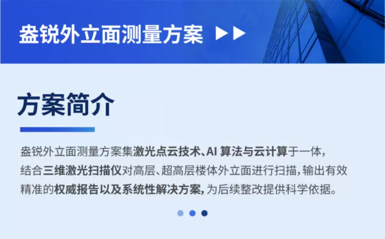 为了更好地解决这些痛点,盎锐科技利用自身技术优势将原有的外立面测量的解决方案进行升级,助力降本提效,提质保安全!