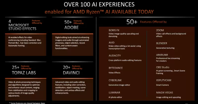 ▲AMD与世界上绝大多数主流AI生态伙伴一起为超过100款应用提供了AI加持的性能体验。