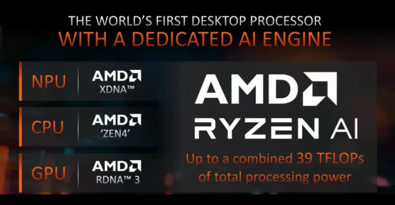▲锐龙8000G系列处理器采用XDNA NPU架构、Zen 4 CPU架构和RDNA 3 GPU架构,三大架构优势为其带来了最高39 TFLOPS的总算力。