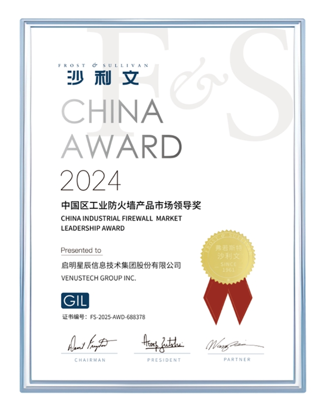近日,弗若斯特沙利文(Frost & Sullivan,以下简称“沙利文”)发布《2024年中国工业防火墙市场洞察报告》。启明星辰集团工业防火墙凭借深厚的技术积累、广泛的应用实践和卓越的市场表现,再次荣膺“中国区工业防火墙产品市场领导奖”。这标志着启明星辰在该领域的持续领先地位与强大竞争力获得业界高度认可。
