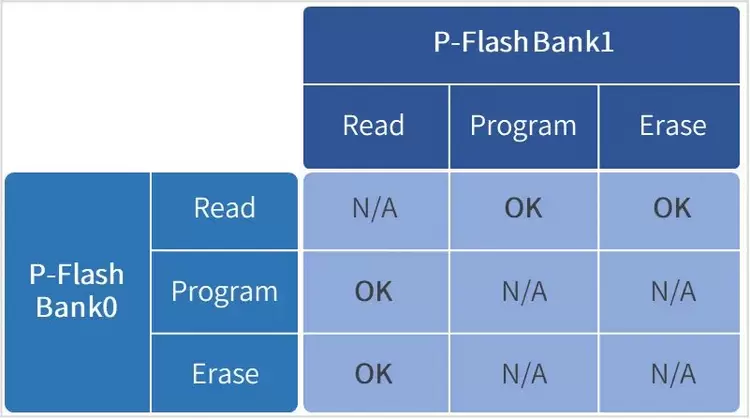 i.CPU在执行Bank0区域代码时,可对Bank1进行擦除及编程操作