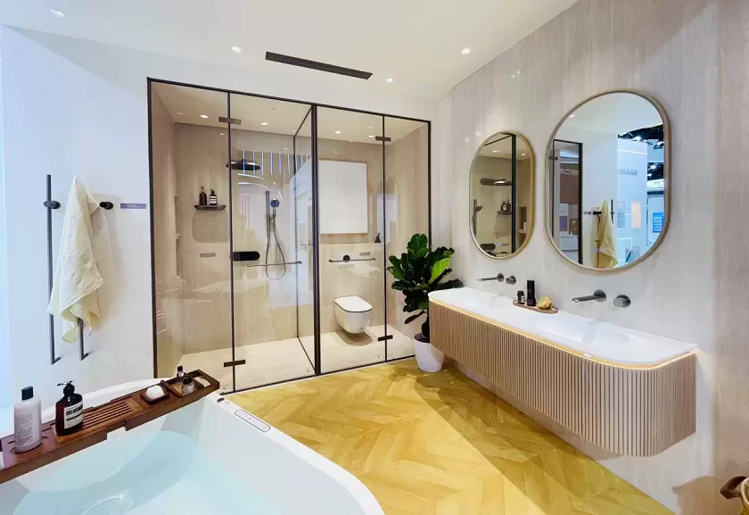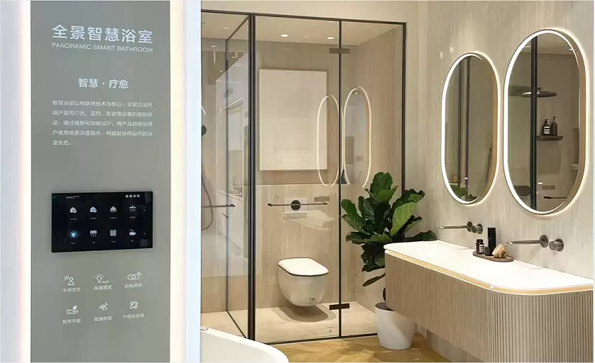 作为全球卫浴行业智能化转型的标杆企业,AXENT恩仕以“智浴之境”为主题,向全球展示NOVIA全景智慧浴室。NOVIA全景智慧浴室,以“无感交互,智慧舒适”为核心,通过硬件与软件的全场景联动,打破传统卫浴单品的功能割裂,构建“感知-响应-优化”的闭环生态,重新定义未来卫浴空间。用户可通过中控面板或APP,唤醒智慧浴室的场景功能,一键启动如厕、淋浴、泡澡等多种预设模式,卫浴产品与灯光、水温、音乐多维联动,营造沉浸式疗愈氛围,为用户打造沉浸式私享空间。