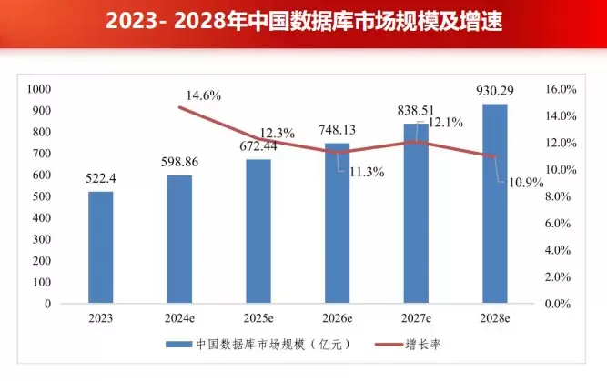 电科金仓董事长仲恺指出,数据库作为数字中国建设的核心支撑,正成为激活新质生产力的关键引擎。因此,随着数字经济、新质生产力的快速发展,国产数据库有广阔的市场前景。据中国通信标准化协会大数据技术标准推进委员会 (CCSA TC601) 发布的《数据库发展研究报告(2024年)》,预计到2028年,中国数据库市场总规模将达到930.29亿元,市场年复合增长率 (CAGR) 为12.23%。
