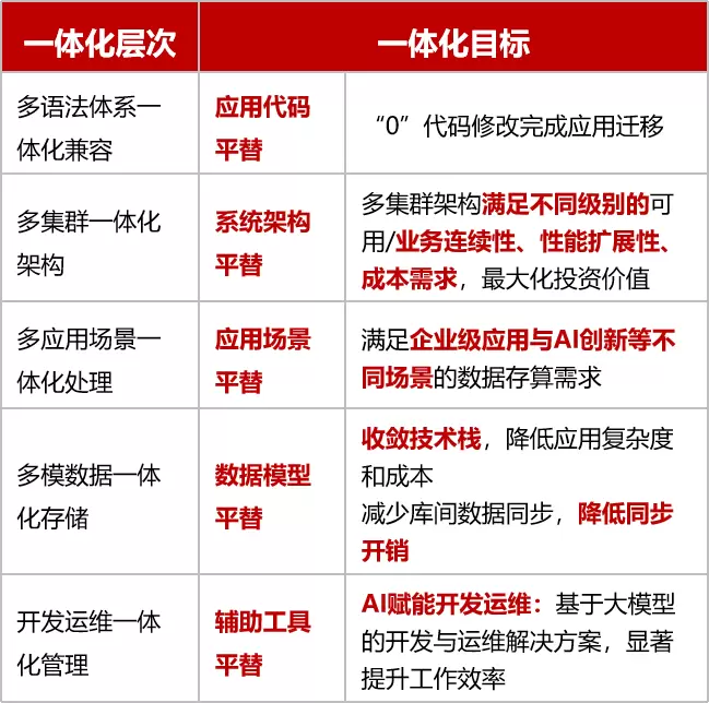 多应用场景一体化处理:打破TP/AP的传统藩篱。数据库需同时应对交易处理(TP)、分析处理(AP),并进一步细化支撑时序分析、日志处理、AI推理等新兴场景。融合架构确保“一个平台,支持多种场景”,避免业务割裂。
