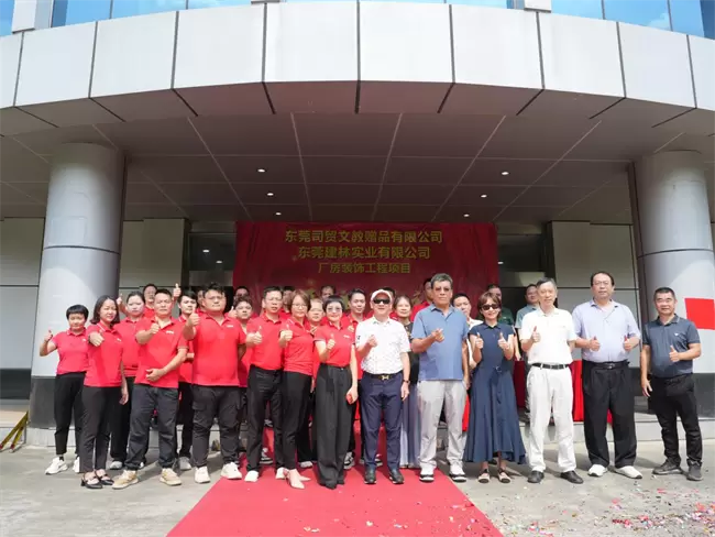 2025年7月17日上午9时28分,司贸集团旗下东莞司贸文教赠品有限公司、东莞建林实业有限公司(简称:司贸、建林)厂房装饰工程开工典礼在厂房大楼前隆重举行。这场典礼不仅是司贸集团战略升级的关键节点,更标志着其厂房升级项目正式落地,为企业高质量发展与区域产业升级注入强劲动能。