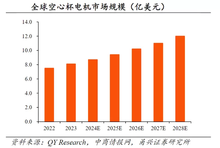 电机:无框力矩电机(单台 Optimus 需 28 个)和空心杯电机(单台需 34 个)应用广泛。据 QY Research 预测,2030 年全球无框电机市场规模将达 12 亿美元(2023 年为 6.7 亿美元),2028 年全球空心杯电机市场将达 11.9 亿美元(2023 年为 8.1 亿美元)。