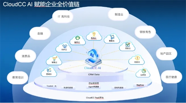 同时提出的"AI+行业"双轮驱动模型,与行业业务场景深度融合,覆盖营、销、服一体化全流程,形成行业化的智能解决方案,目前已成功应用于IT、金融、制造、医疗器械、教育等8大领域,助力企业客户转化率平均提升37%。