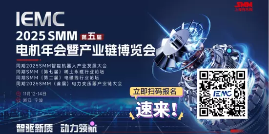 IEMC 2025 SMM(第五届)电机年会暨产业链博览会将于2025年11月12-14日在浙江•宁波盛大开幕!本届展会以“智驱新质,动力领航”为主题,聚焦电机全产业链顶尖企业与前沿技术,携手200+展商倾力打造10000㎡+展览面积全电机品类、电机控制系统及装置、测试仪器及设备、线圈配套及材料、机器人五大核心展区。