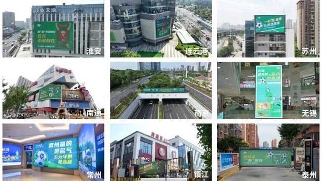 这些精心设计的“苏超梗”迅速占据了江苏各地市的核心视野。在西环高架友联大厦、苏州工业园区、苏宁广场、南通华强广场、茂业时代广场等城市地标大屏上,「球场“漏水”算失误 家里“漏水”算事故 公元,靠得住!」、「控球,你很行 控水,我万能」、「球场考场,都是南通主场 给水排水,都是公元专长」、「用公元防水,挨着太湖也不‘水’」等朗朗上口的“苏超梗”,吸睛无数;行经南京扬子江大道绿博园隧道等交通要道,「攻守皆“京”彩,流动更自在」等标语成为一道道独特的风景线,覆盖高频流动人群;此外,公元还将触角深入到十三座城市的街头巷尾——出租车后屏、公交站台、核心社区....以地毯式投放,有力推动“ERA公元”深入人心。
