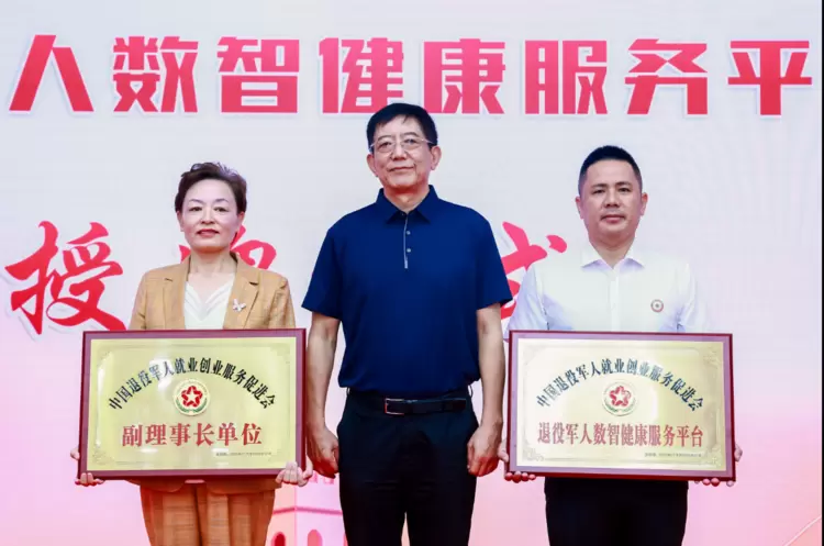 中国退役军人就业创业服务促进会林岗为退役军人数智健康服务平台授牌,为平台骨干组成人员颁发聘书,进一步完善了平台的组织架构。