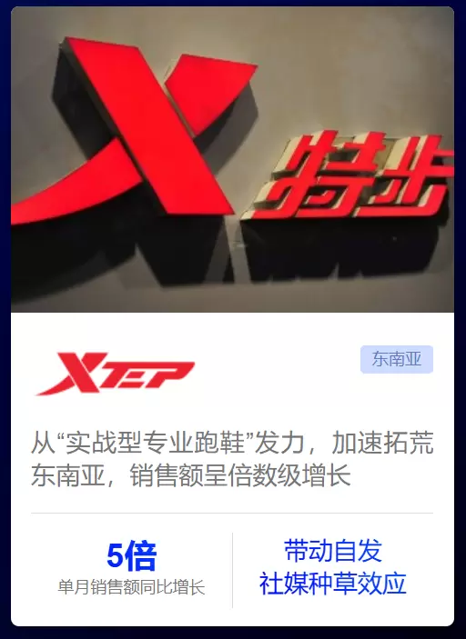 例如近两年,多家中国运动品牌初启动海外布局。在特步出海的过程中,钛动科技一直与其保持密切合作,针对东南亚地区特点,制定营销主战略,差异化打造品牌亮点,全方位赋能网店运营及推广,品效双收,助推特步迅速拓展和占领海外市场。