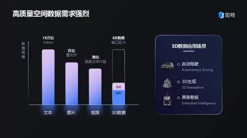 杨光在主题演讲中指出,随着大语言模型实现对文本语义的深度解构、AIGC完成对视觉内容的创造性突破,人工智能技术正从“处理虚拟信息”迈向“理解物理世界”的关键拐点。在此背景下, AI产业已进入空间智能时代。自动驾驶、3D生成、具身智能等应用场景的蓬勃发展,带动各行业对高质量空间数据的需求呈现爆发式增长。