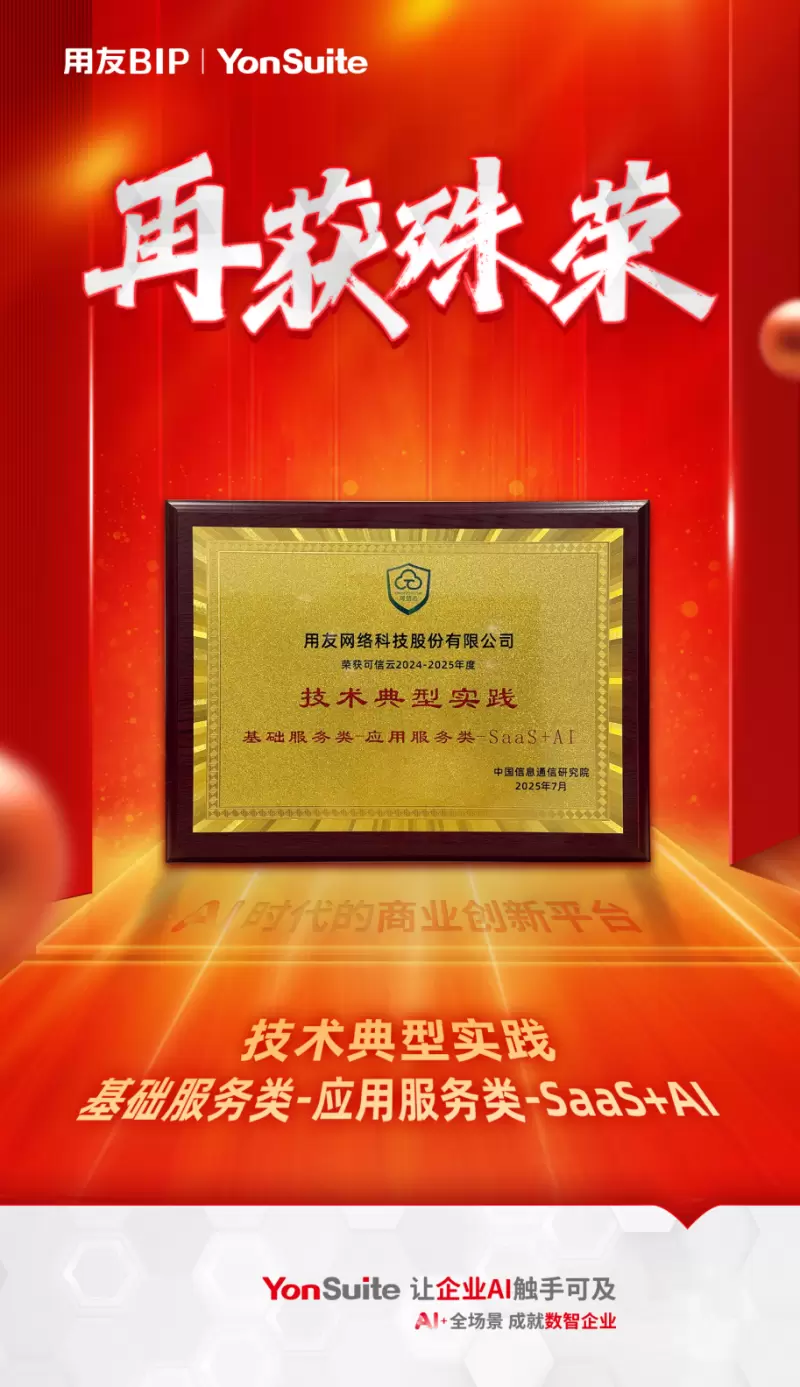 - 重磅!用友YonSuite斩获可信云“ SaaS +Al“顶级认证