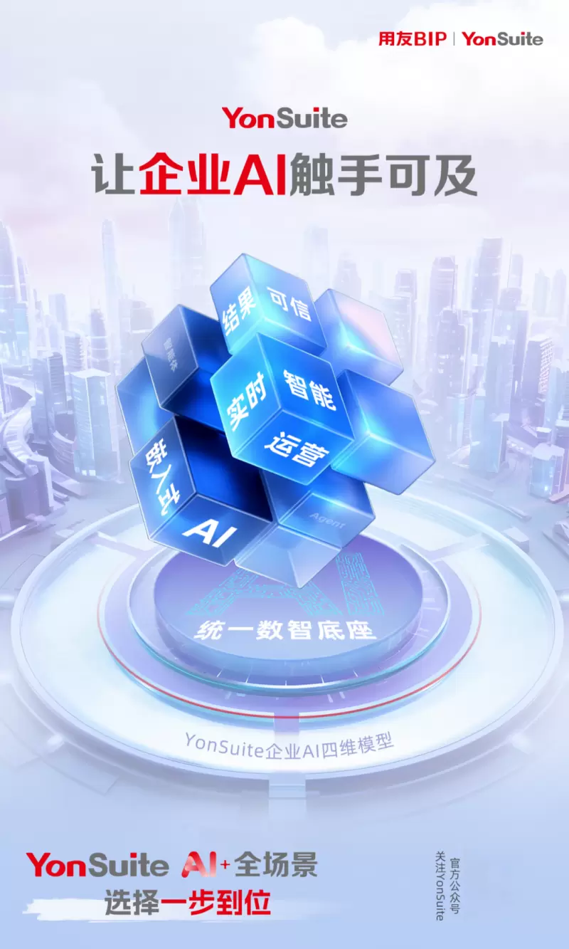历经6年创新发展,用友YonSuite为成长型企业提供了全面的AI解决方案,凭借统一数智底座、嵌入核心业务、实时智能运营、结果可靠/安全合规四维模型,降低了企业应用AI的门槛和难度,让企业AI变得“触手可及”。