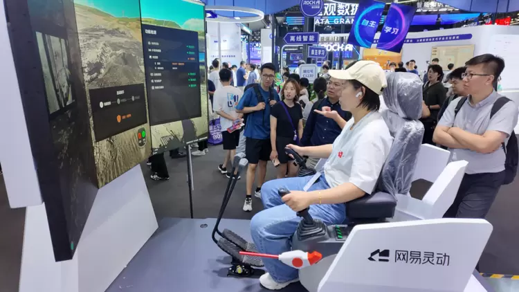 在网易灵动展位,观众通过智能座舱实时体验了千里之外内蒙古矿山的无人挖掘机自动装车功能。“没想到AI也能帮助我们干危险的工作了!”观众们对挖掘机丝滑的无人操作发出惊叹。