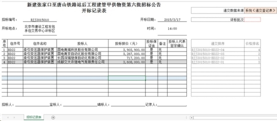用于投标文件扫码递交完成后自动按倒序汇总递交记录,以备唱标时做记录使用。