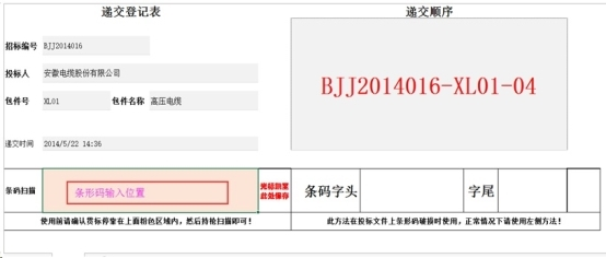 用于标书发售时厂家购买信息的登记,并打印出相关信息和条形码,要求供应商粘贴于标书密封包装外,条形码用于之后的标书递交环节使用扫码枪快递收