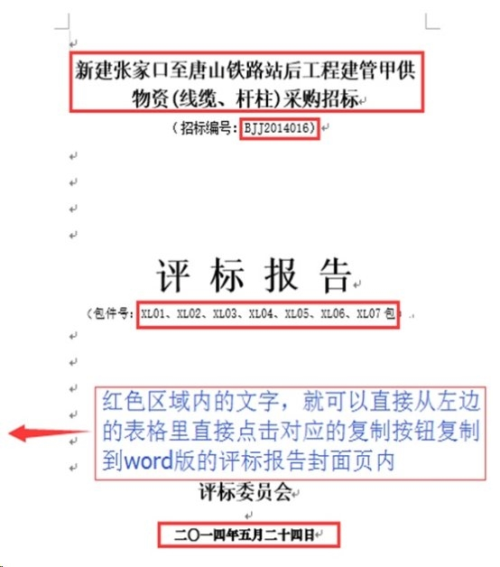 用于中标结果公示word文件的快速制作,方法同上一章节的评标报告数据复制。