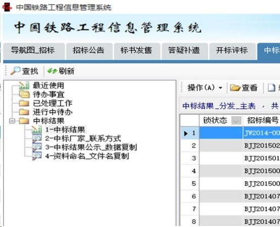 • 该系统是通过中铁物总国际招标有限公司招开标工作的参与,了解相关的业务流程而开发设计,并经过了张唐铁路招投标工作的实际应用。