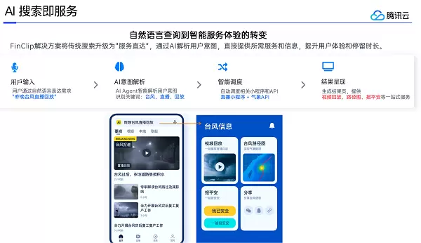 当用户输入 “查台风直播回放”,系统可自动调用直播小程序与气象 API,生成包含回放、路径图的一站式小程序服务页,实现从 “人找服务” 到 “服务找人” 的转变。