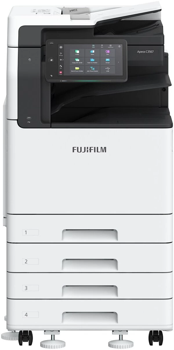 Apeos C3567/C3067/C2567具备彩色打印、彩色扫描、彩色复印和传真功能,打印/复印速度为每分钟35/30/25页*1,可实现专业彩色打印品质、设计简约、智能操控、高可扩展性、高可靠性、节能环保等,还可作为一体式集成智能助手实现全方位信息安全、无忧服务、无边界协作并简化工作流程。系列产品采用新数字化平台,预装扫描专递精简版、无纸化传真专递*2等应用,可直接接入司录文件处理中台、司印云打印等智能办公解决方案,能满足不同类型企业的多样化办公需求,加速数字化转型。
