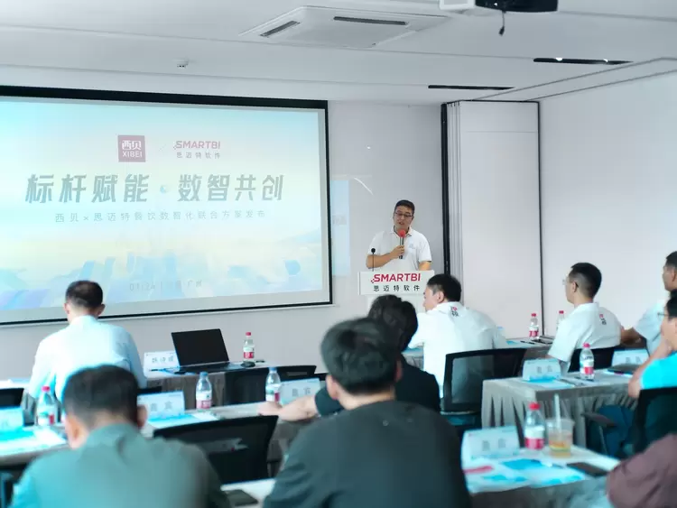7 月 24 日下午,西贝×思迈特餐饮数智化联合方案发布活动在广州思迈特总部顺利举行。本次私享会特邀数十家头部餐饮连锁企业代表齐聚一堂,以 “技术赋能餐饮运营,数智驱动连锁增长” 为核心,就数智化转型中的实操难题展开热烈探讨,进一步丰富了行业转型思路。活动中,双方联合打造的餐饮数智化解决方案首次公开亮相,为连锁餐饮企业突破运营瓶颈、实现高效增长提供了可落地的转型路径。
