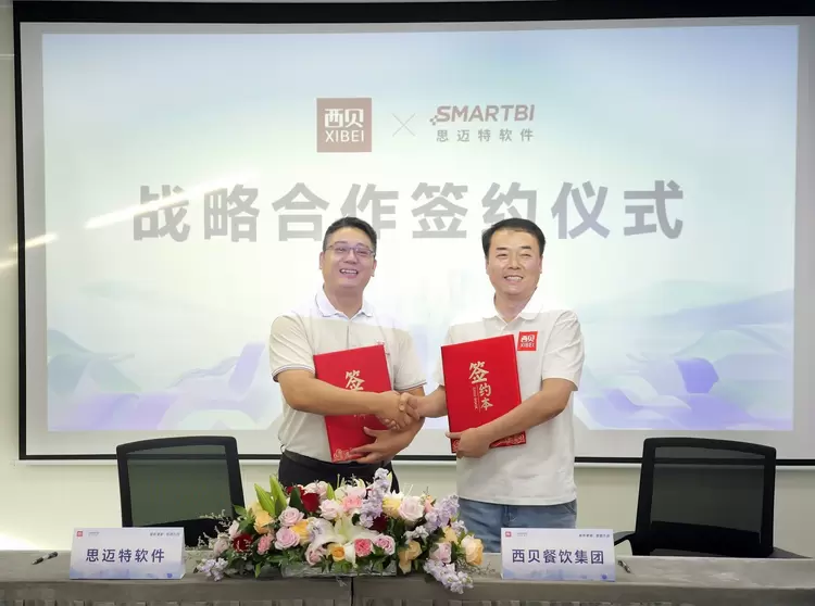 通过对业务场景的深度剖析与技术方案的系统解读,西贝与思迈特的数智化实践成果已清晰呈现,而这场融合了行业经验与技术实力的探索,最终在战略合作签约环节形成了阶段性的重要成果。这标志着餐饮数智化迈入 “场景深耕 + 技术融合” 阶段,树立了 “企业实战经验与技术服务商深度协同” 的行业典范。值得关注的是,双方将以联合方案为基础,向全行业推广经西贝验证的数智化转型路径,助力更多连锁餐饮企业突破发展瓶颈,加速行业转型升级。