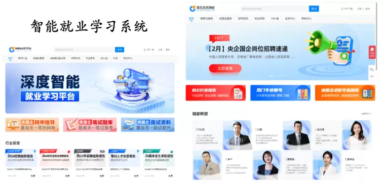 就业学习系统,拥有全面的求职备考学习资源,实现求职各环节、各流程的课程资料全覆盖,包括职业规划、网申简历指导、笔面试提升技巧等,随时随地在线学习。笔试面试备考题库,覆盖全面、精准高效涵盖求职备考必备的行测、申论、公基、时政四大核心科目,包含最新企业考情和高频考题,能提供全方位备考资源;题库知识点更细,可基于考点开展精准训练,大幅提升学习效率。热门企业真题更新,方便快捷、一搜即得提供热门重点企业的真题,让学员快速了解目标企业的最新考情,依据自己的目标企业提前练习,早做准备;对于热门重点行业、企业,笔面试学习资料一搜就有,孩子考哪个企业练哪个企业,备考效率更高。