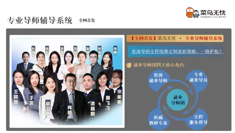 在就业市场竞争日趋激烈、信息过载与精准需求错位并存的当下,菜鸟无忧始终坚信:真正高效的就业服务,既要靠科技打破信息壁垒,更要靠专业夯实服务根基。“科技 + 专业” “AI+导师”的深度融合,正是菜鸟无忧破解就业难题、赋能求职者的核心竞争力。