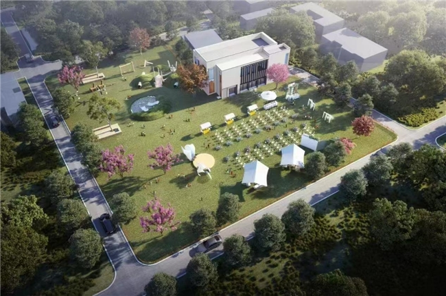 - 空间亮点:3000㎡户外草坪+红色拱券艺术空间,现代与自然交融。