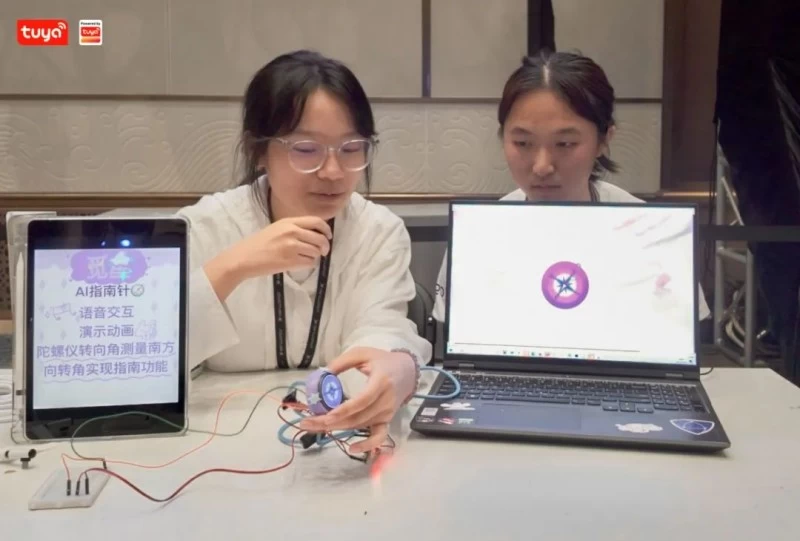 “觅星指南针”重新定义了传统的导航工具,该团队成员基于涂鸦T5开发板,开发了一个集成了高精度陀螺仪的AI指南针,可通过显示屏清晰指示方向,将其变身为连接星空与情感的天文伙伴。